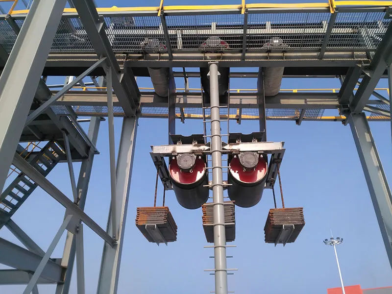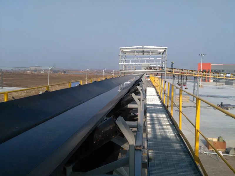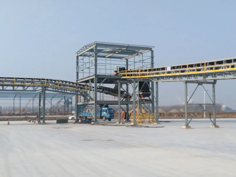 The project features a total conveyor length of 1,300 m, a belt width of 1,000 mm, a capacity of 1,000 t/h, and a belt speed of 2.5 m/s. The system includes transfer stations and adopts an elevated conveyor structure with double-sided maintenance walkways throughout. Additionally, a dual vertical gravity take-up system is used for belt tensioning.