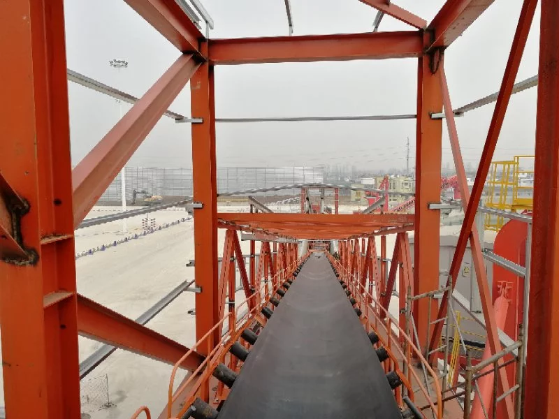 The project used equipment including:The system comprises 12 belt conveyors, all with a belt width of 1200mm, a rated capacity of 1200t/h, and a belt speed of 2.5m/s, with a total installed length of 1566 m. The process involves front-end loaders feeding material into the pit hopper, where a material limiting device regulates the feed onto the pit belt conveyor. The pit belt conveyor then transfers the material to the ship loader to complete vessel loading operations.