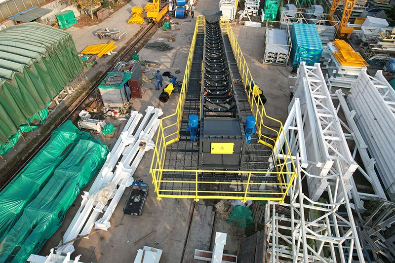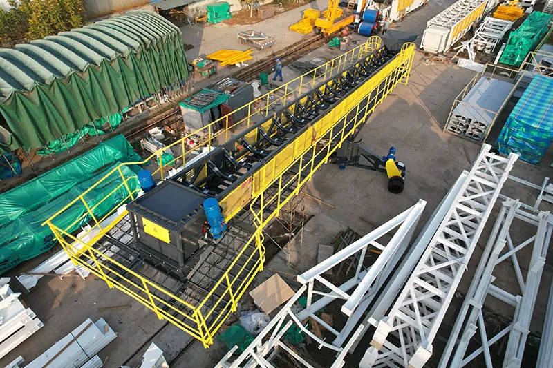 The mobile stacker is designed with a rated capacity of 200 t/h and is suitable for materials with a bulk density of about 1.6 g/cm³. It has a maximum overall length of 25 meters, a belt width of 1,000 mm, and a belt speed of approximately 1.6 m/s. The stacker includes a luffing angle range of 10°–16°, a slewing angle of 270°, and a lifting speed of 0.1 m/s. It is equipped with a hydraulic station rated at 7.5 kW, and the total installed power of the system is approximately 45.5 kW.