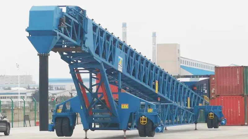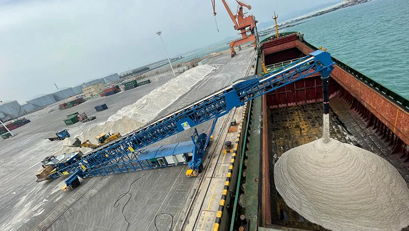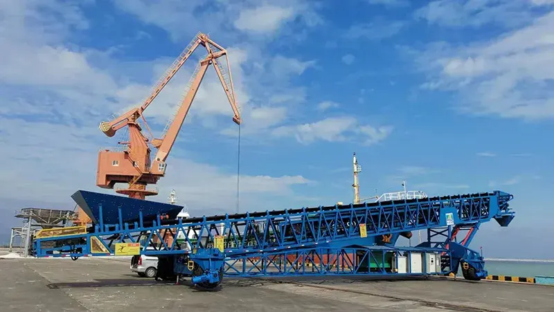 The ship loading project for Kibing Glass Company at Dongshan Port is an example of how advanced material handling technology has a significant impact on the port industry. This project features a ship loader with a belt width of 1000mm and a belt speed adjustable from 0 to 3.5m/s. The entire conveying unit has 46m in length, 6.8m in width, and stands 14m tall, capable of handling unloading heights from 5 to 14m. Using variable frequency motorized pulley, the conveying capacity can reach 1400 tons/hour.