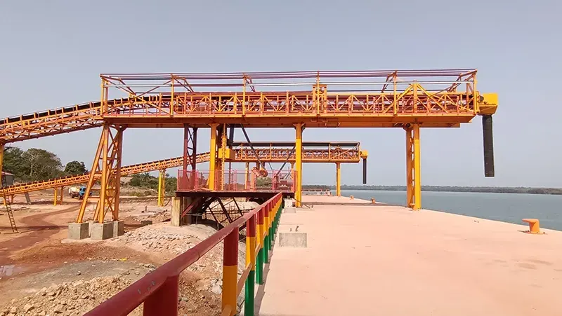 The Ashapura Minechem ship loading project at the Port of Guinea was launched in December 2019, where Yuxin provided a customized approach to solve the complex material handling needs. After in-depth discussions and on-site analysis, our team has designed a unique ship loader system. It includes three belt conveyors of BW1400mm, capable of moving 1200 tons of material at a speed of 2.5m/s per hour. These conveyors are 128.83 meters long and can lift materials up to 9.86 meters high. A prominent feature is the expandability of the conveying head, which improves the flexibility of operation.
