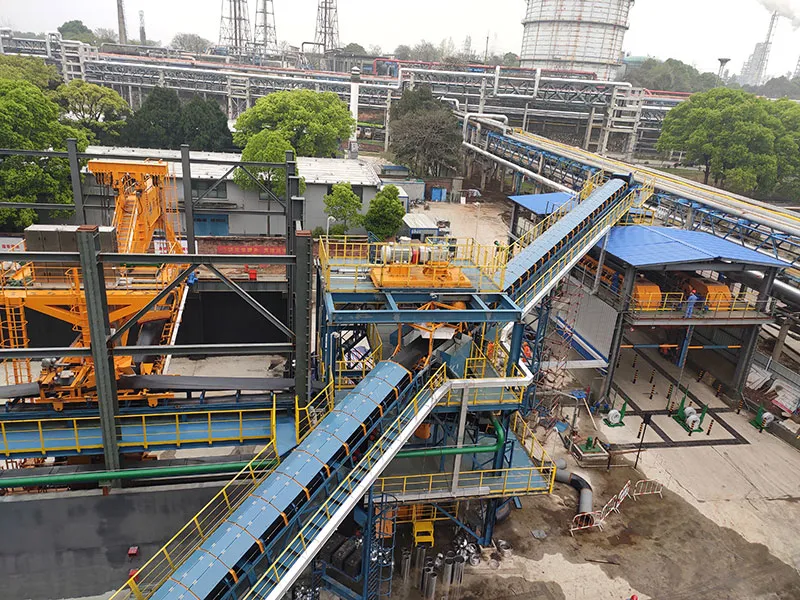 This project includes 7 belt conveyors totaling 300 meters, with one truck loading system. The belt width is 1,000 mm, with a conveying capacity of 500 t/h and a belt speed of 2 m/s. The system includes one truss-type reversible conveyor, one truss-type stacking conveyor, and one pipe belt conveyor measuring 120 meters in length and 400 mm in diameter, as well as three fixed double-sided unloaders and one single-sided mobile unloader.