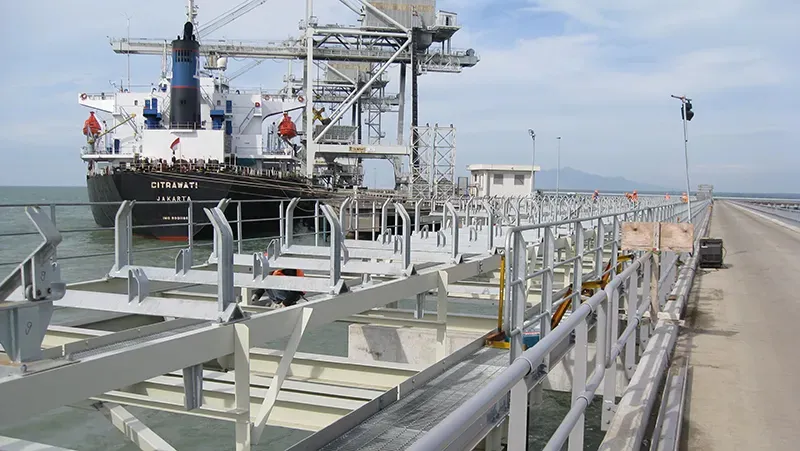 Within this project, the conveyor belt system plays an important role in ensuring an efficient and continuous supply of coal. With a total of twenty conveyor belts, varying in width between 1,200 and 1,400 mm, and a 400 mm diameter tubular conveyor spanning 9,376 metres, the project incorporates a deepwater discharge terminal capable of processing 1,500 tons of material per hour and extends 1.2 kilometers out to sea. This strategic design underlines the capacity and future vision of the Tanjung Jati B project.