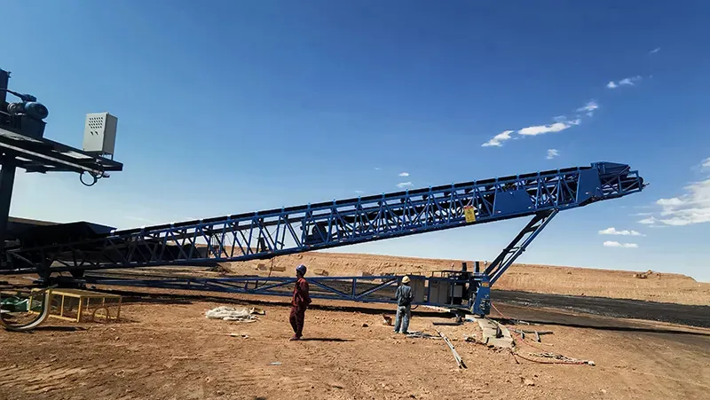 For the Xinjiang Desert open pit mining project, CHN Energy Group requested an innovative stacker capable of handling coal dust. This stacker is not only versatile with its tilt, extend and swivel capabilities, but can also be controlled both on site and remotely. It boasts a transport range of 30.8 m to 40.8 m, with a capacity of 1,500 t/h. Designed for efficiency, it has a belt width of 1200 mm, an adjustable belt speed of up to 4.0 m/s and can stack materials to heights ranging from 4 to 12 m. Its inclination angle varies between 8° and 17°, powered by motors totaling 135kW. In addition, its telescopic movement extends up to 10.4 m at a speed of 0.1 m/s, while its turning function allows mobility at a rate of 0.1 to 0.2 m/s, supported by two 4 kW motors.