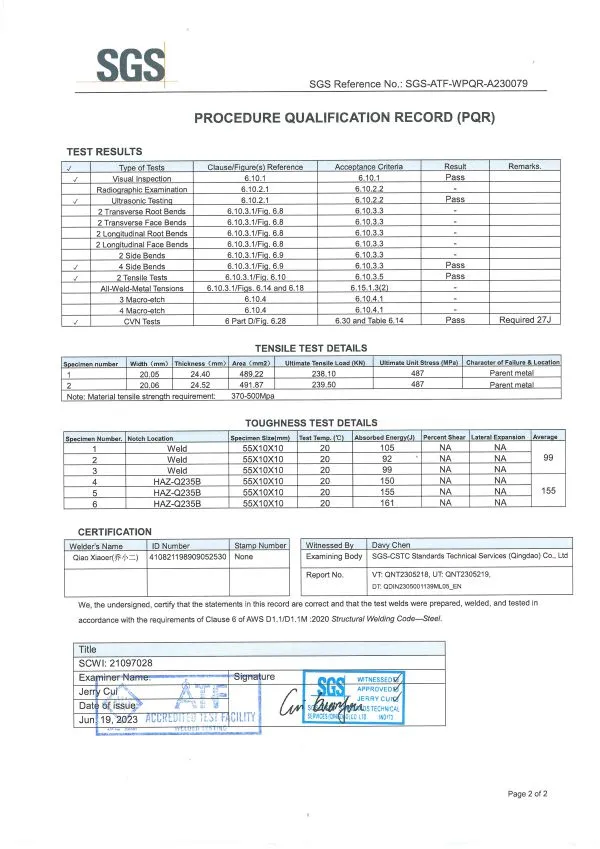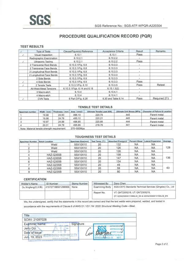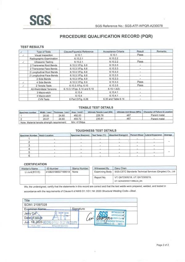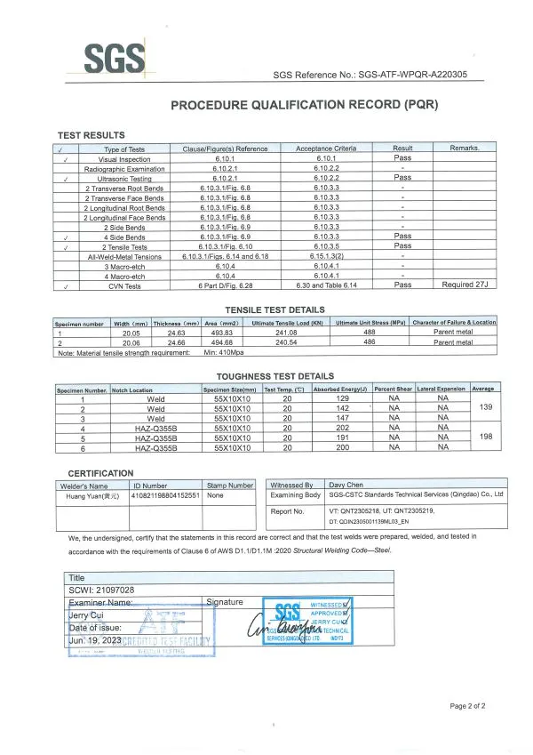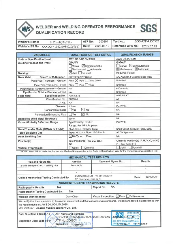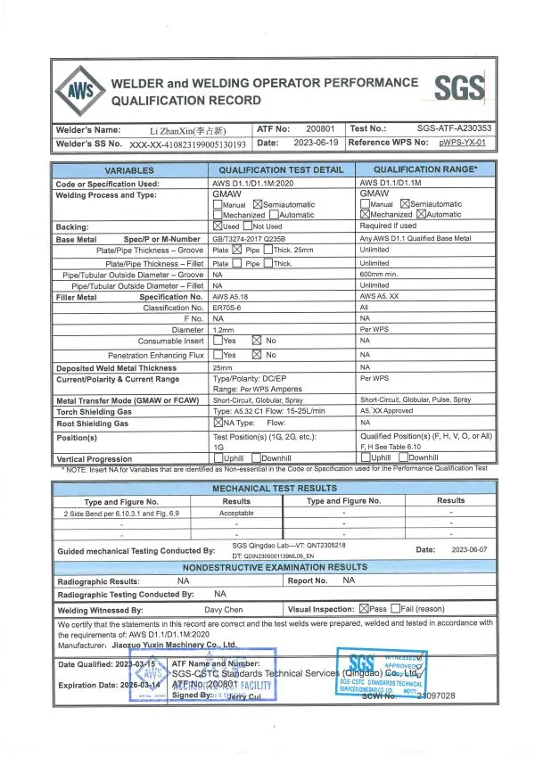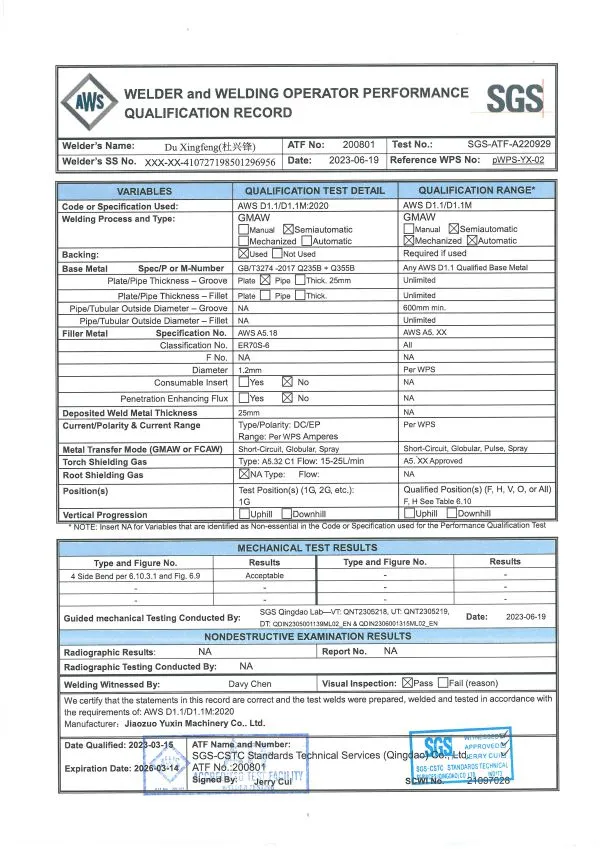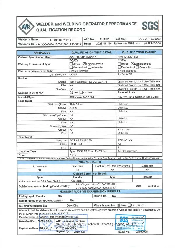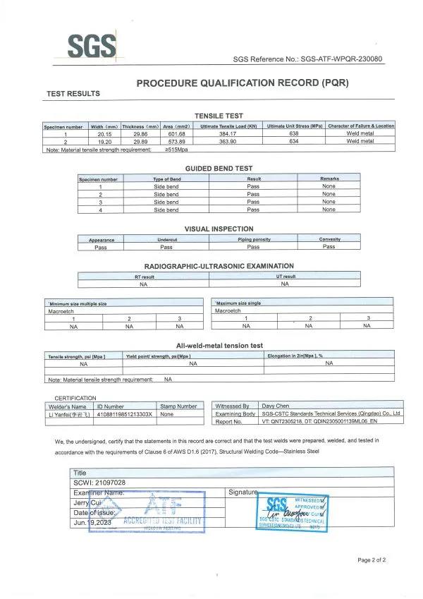 Our equipment undergoes rigorous testing, including professional inspection reports and welding certifications issued by SGS, guaranteeing superior quality assurance.