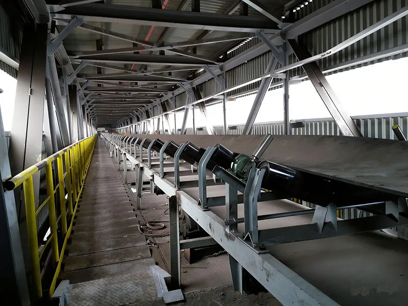 The project involves 21 belt conveyors spanning a total length of 1,100 m. The system uses three different belt tensioning methods: gravity take-up, screw take-up, and hydraulic take-up. Eight of these conveyors have a belt width of 1,200 mm, with a capacity of 800 t/h, and a belt speed of 2.0 m/s. The other thirteen conveyors are 1,000 mm wide, can handle 400 tons per hour, and have a speed of 1.6 meters per second.