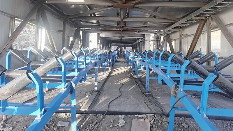 This coal conveying project features 8 belt conveyors and 2 double-sided plow-type unloaders. The belts have widths of 1,000 mm, 1,200 mm, and 800 mm, operating at speeds of 2.0 m/s and 1.6 m/s. The system's conveying capacities are 400 t/h and 300 t/h.