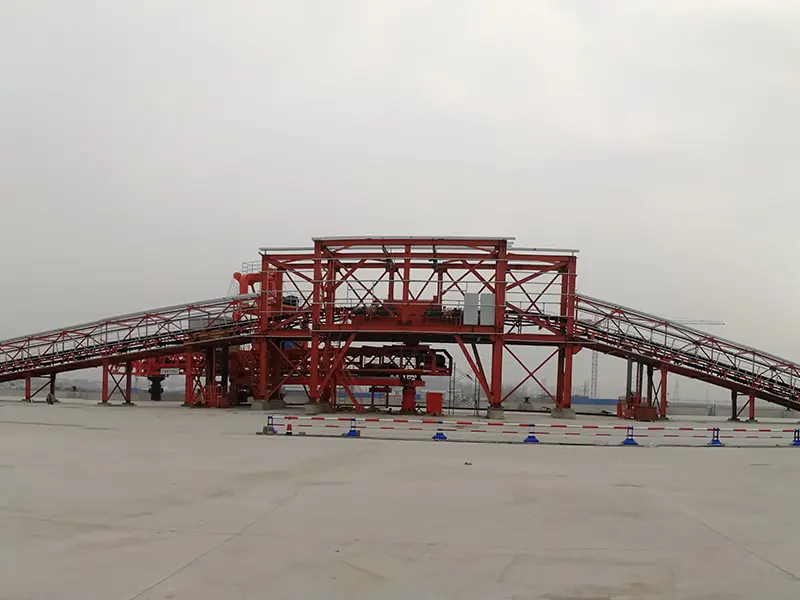 The project used equipment including:The system comprises 12 belt conveyors, all with a belt width of 1200mm, a rated capacity of 1200t/h, and a belt speed of 2.5m/s, with a total installed length of 1566 m. The process involves front-end loaders feeding material into the pit hopper, where a material limiting device regulates the feed onto the pit belt conveyor. The pit belt conveyor then transfers the material to the ship loader to complete vessel loading operations.