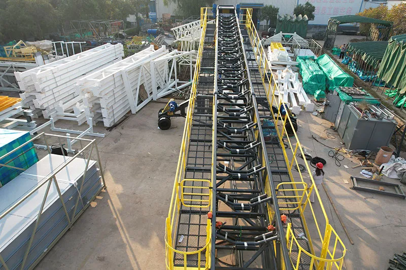 The mobile stacker is designed with a rated capacity of 200 t/h and is suitable for materials with a bulk density of about 1.6 g/cm³. It has a maximum overall length of 25 meters, a belt width of 1,000 mm, and a belt speed of approximately 1.6 m/s. The stacker includes a luffing angle range of 10°–16°, a slewing angle of 270°, and a lifting speed of 0.1 m/s. It is equipped with a hydraulic station rated at 7.5 kW, and the total installed power of the system is approximately 45.5 kW.